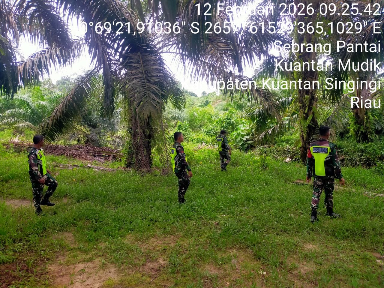 Babinsa Koramil 08/KM Kodim 0302/Inhu Sertu Hendi Saputra bersama rekan babinsa Lainnya melaksanakan kegiatan patroli pencegahan kebakaran hutan dan lahan (karhutla) Di Desa Sebrang Pantai kecamatan Kuantan mudik kabupaten Kuantan Singingi. Kamis ( 12/02/2026 ).