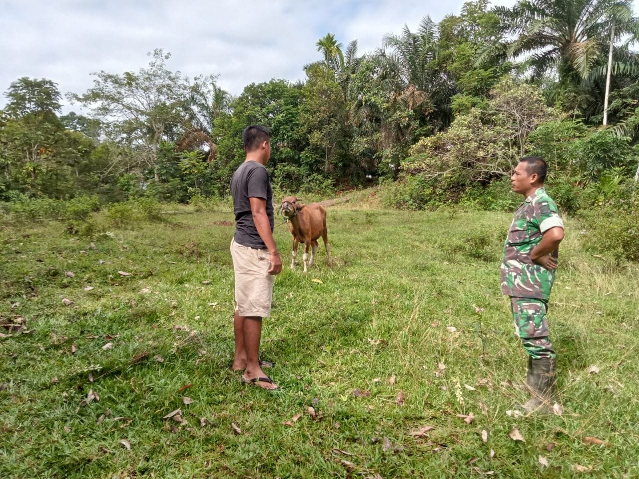 Cegah Wabah PMK,Babinsa Koramil 08/KM Himbau Peternak sapi Di Desa Binaan