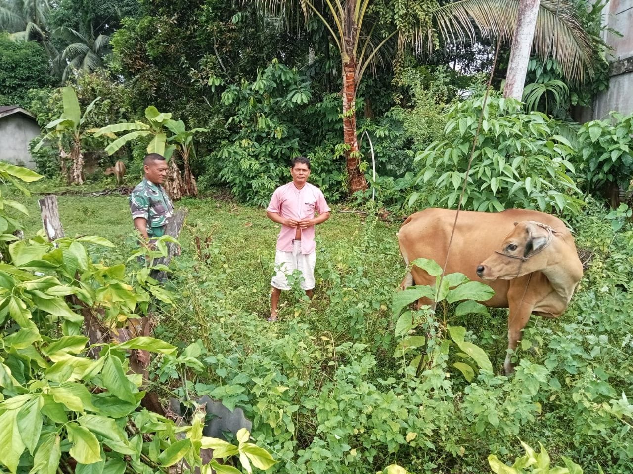 Babinsa di wilayah turun langsung memantau kesehatan ternak di sejumlah peternakan yang ada.Tujuannya untuk mencegah virus PMK dengan melihat langsung hewan peternak kemungkinan adanya ciri-ciri hewan tersebut terjangkit virus PMK.”Ia mengimbau kepada warga maupun peternak agar selalu menjaga kebersihan kandang dan kesehatan hewan ternaknya serta mengantisipasi datangnya hewan ternak seperti sapi, kambing dan kerbau dari wilayah lain”.Ujar Babinsa.