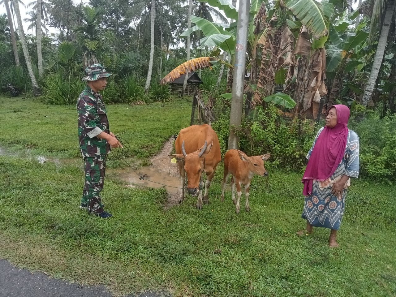 Babinsa di wilayah turun langsung memantau kesehatan ternak di sejumlah peternakan yang ada.Tujuannya untuk mencegah virus PMK dengan melihat langsung hewan peternak kemungkinan adanya ciri-ciri hewan tersebut terjangkit virus PMK.”Ia mengimbau kepada warga maupun peternak agar selalu menjaga kebersihan kandang dan kesehatan hewan ternaknya serta mengantisipasi datangnya hewan ternak seperti sapi, kambing dan kerbau dari wilayah lain”.Ujar Babinsa.
