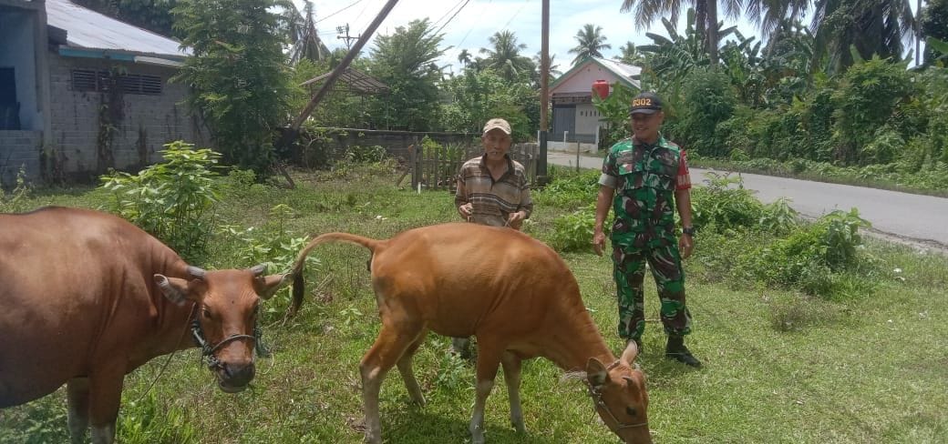 Babinsa di wilayah turun langsung memantau kesehatan ternak di sejumlah peternakan yang ada.Tujuannya untuk mencegah virus PMK dengan melihat langsung hewan peternak kemungkinan adanya ciri-ciri hewan tersebut terjangkit virus PMK.”Ia mengimbau kepada warga maupun peternak agar selalu menjaga kebersihan kandang dan kesehatan hewan ternaknya serta mengantisipasi datangnya hewan ternak seperti sapi, kambing dan kerbau dari wilayah lain”.Ujar Babinsa.