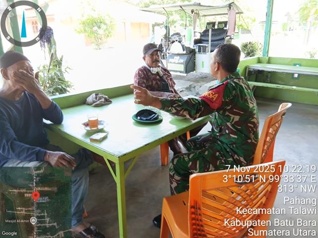 Batu Bara | Dalam kesempatan ini pada Komsosnya bersama Warga berterimakasih atas kepedulian babinsa telah mengingatkan untuk menjaga kesehatan di musim suhun Panas saat ini dan Terjalinnya hubungan baik antar warga binaan dengan Babinsa. Dalam rangka agar terjalinnya komunikasi yang baik antara Babinsa dengan masyarakat TNI kuat bersama Rakyat, dalam kesempatan ini seperti yang dilakukan oleh Personel Bintara Pembina Desa (Babinsa) Koramil 04/Talawi jajaran Kodim 0208/Asahan Sertu Hermansah turun kewilayah binaan untuk melaksanakan kegiatan Komunikasi Sosial (Komsos) bersama dengan Warga masyarakat binaan serta menjalin hubungan silaturahmi yang baik dengan masyarakat, tetap solid sehingga dapat mengetahui informasi yang berkembang, Komsos dan silaturahmi dengan masyarakat di Dusun VI Desa Pahang perlunya menjaga kesehatan dengan peduli kebersihan lingkungan, Bersama dengan Bapak Otok (Masyarakat) dan Bapak Amran (Masyarakat), kegiatan tersebut yang dilaksanakan bertempat di Desa Pahang Kecamatan Talawi Dusun VI Kabupaten Batu Bara, Jumat (07/1/2025).