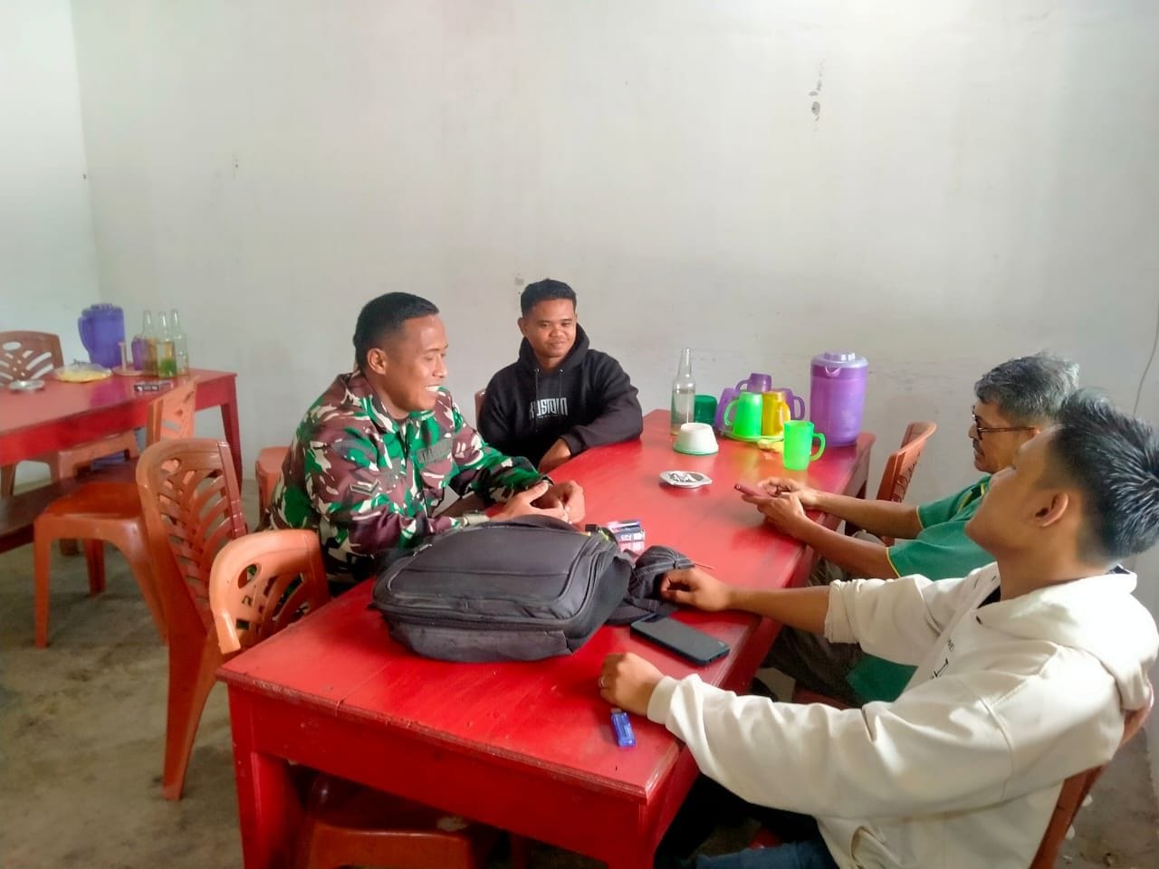 Babinsa menjelaskan kegiatan komsos ini dilakukan karena sudah menjadi tugas pokok sebagai seorang Aparat Teritorial khususnya para anggota yang senantiasa melaksanakan Komsos untuk mencari informasi dan sebagai sarana bersilahturahmi kepada warga supaya lebih dekat dan bisa menjalin kebersamaan,” Terangnya.
