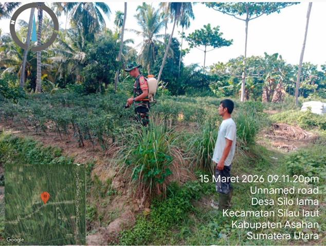 Dengan adanya pendampingan dari kami para Babinsa bisa membantu kendala atau kesulitan yang di hadapi oleh petani, pendampingan yang di lakukan Babinsa merupakan wujud bahwa TNI juga ambil bagian dalam membantu mensukseskan swasembada pangan Nasional, dalam kesempatan ini seperti yang dilakukan oleh Personel bintara Pembina Desa (Babisna) Koramil 07/Air Joman jajaran Kodim 0208/Asahan Sertu Ali Imron turun kewilayah binaan untuk melaksanakan kegiatan mengunjungi petani cabe, dengan melaksanakan kegiatan monitoring dan membantu perawatan tanaman cabai dilahan milik Sodara Wawan, dengan demikian tanaman cabe harus disemprot cairan pestisida agar mengusir hama -hama yang datang dan menggerogoti tanaman cabe, dengan ini petani harus bekerja extra dalam penyemprotan pestisida untuk mengusir hama, kegiatan tersebut yang dilaksanakan bertempat di Dusun 3 Desa Silo Lama Kecamatan Silau Laut Kabupaten Asahan, Minggu (15/03/2026).
