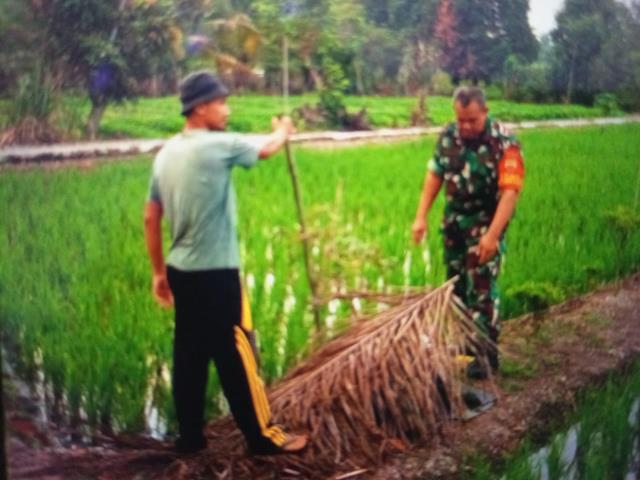 Babinsa mendampingi petani dalam melaksanakan Pembersihan rumput di atas benteng yang dapat mengganggu pertumbuhan padi, kegiatan pendampingan petani membersihkan jerami padi dan memperbaiki Benteng sawah agar mempermudah untuk pengelolahan penanaman baru Padi, kegiatan tersebut yang dilaksanakan bertempat di Dusun III Desa Sipaku Area Kecamatan Simpang Empat Kabupaten Asahan, Jumat (30/01/2026).