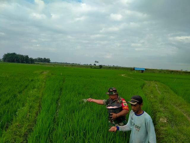 Dampingi Petani Pemupukan Padi Disawah Dilakukan Personel Koramil 01/MD Kodim 0208/Asahan