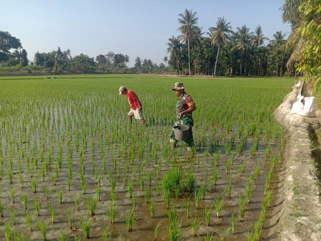 Kegiatan Hanpangan membantu Petani memupuk tanaman padi agar tanaman padi menghasilkan gabah yang berkualitas dan tahan terhadap hama, kegiatan pendampingan Hanpangan dengan membantu petani untuk menyebarkan Pupuk di tanaman padi bertujuan mendukung program pemerintah agar Tercapainya Swasembada pangan dengan Hasil yang memuaskan, kegiatan tersebut bertujuan untuk membantu sekaligus memotivasi petani agar semangat dan berinovasi dalam bertani sehingga hasil panen dapat memuaskan nantinya, membantu pemupukan tanaman padi untuk meningkatkan hasil panen dan memperbaiki struktur tanah, kegiatan pendampingan hanpang membantu petani memupuk tanaman padi, dengan memantau dan membantu pemupukan tahap pertama disawah, dengan membantu petani mulai dari proses penanaman sampai tanaman dapat dipanen. Tujuan pemupukan ini yaitu untuk memberikan kesuburan terhadap batang tanaman padi dan sebagai langkah dalam mengurangi serangan hama tanaman padi. Pemupukan ini sebaiknya dilakukan secara serentak supaya penanggulangan hama padi bisa berjalan dengan efektif. Babinsa mengatakan bercocok tanam padi di sawah menjadi aktifitas rutin dilakukan oleh masyarakat yang tinggal di pedesaan, karena hal itu juga merupakan salah satu mata pencarian mereka.