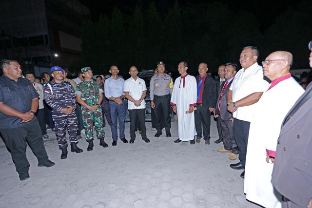 Kegiatan tersebut dilakukan sebagai bentuk sinergitas TNI, Polri, dan pemerintah daerah dalam memastikan situasi keamanan dan ketertiban masyarakat tetap kondusif selama pelaksanaan ibadah Malam Natal. Selain meninjau langsung kesiapan pengamanan, rombongan juga berinteraksi dan menyapa jemaat yang tengah mengikuti rangkaian ibadah.