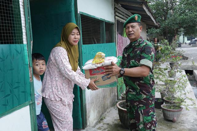 Dandim 0208/Asahan Bersama Perwira Staf Bagikan Bahan Pokok Untuk Anggota Terdampak Banjir Di Asrama Gunung Sitoli