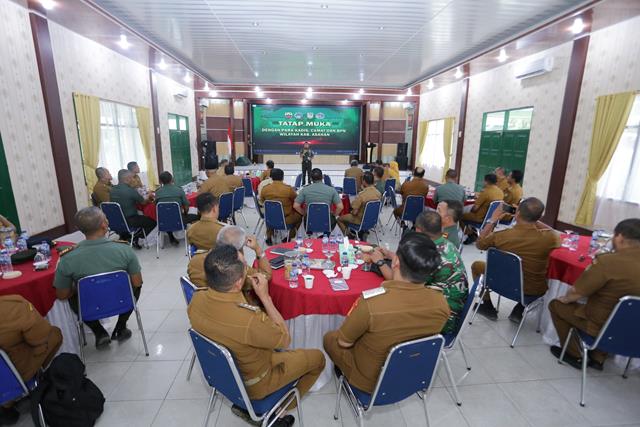 Asahan – Komandan Kodim 0208/Asahan Letkol Inf Edy Syahputra, S.H., M.I.P. melaksanakan kegiatan tatap muka bersama para Camat se-Kabupaten Asahan dalam rangka menyinergikan dukungan terhadap program prioritas nasional Asta Cita Presiden Republik Indonesia, Prabowo Subianto. Kegiatan ini berlangsung di Aula Makodim 0208/Asahan, Selasa (05/08/2025).