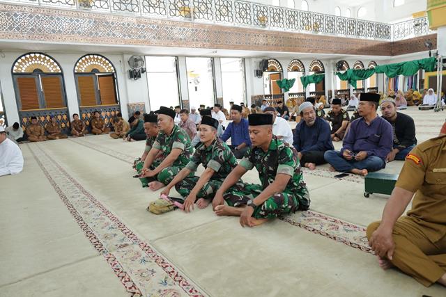 Asahan | Dalam rangkaian peringatan Hari Jadi ke-80 Kabupaten Asahan, Komandan Kodim (Dandim) 0208/Asahan Letkol Inf Edy Syahputra, S.H., M.I.P. didampingi Ketua Persit Kartika Chandra Kirana Cabang XXXV Dim 0208/Asahan Ny. Vina Ananda Edy Syahputra, S.E., M.M. menghadiri kegiatan dzikir dan doa bersama yang dilaksanakan di Masjid Agung H. Achmad Bakrie Kisaran, Senin (16/3/2026).