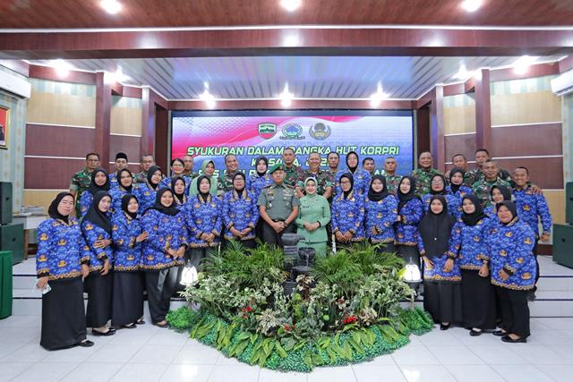 Asahan | Komandan Kodim (Dandim) 0208/Asahan Letkol Inf Edy Syahputra, S.H., M.I.P. didampingi Ketua Persit Kartika Chandra Kirana Cab XXXV Dim 0208 Asahan Ny. Vina Edy Syahputra, S.E., M.M. menghadiri acara syukuran Hari Ulang Tahun (HUT) ke-54 Korps Pegawai Republik Indonesia (Korpri) bagi PNS dan PPPK Kodim 0208/Asahan yang digelar di Aula Pandawa Sakti Kodim 0208/Asahan, Rabu (10/12/2025).