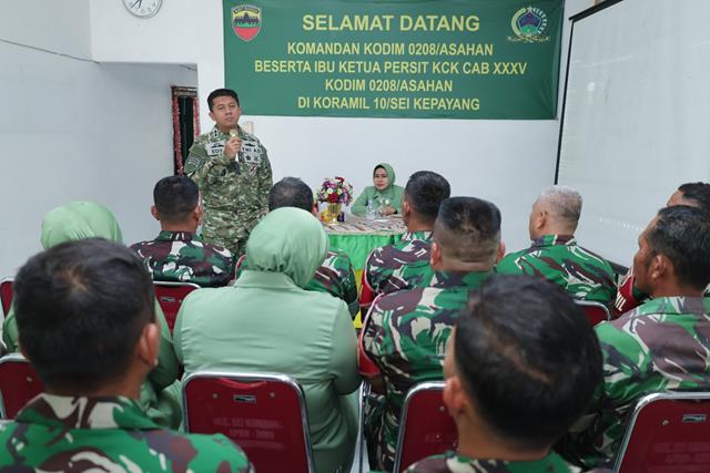 Kunjungan kerja tersebut disambut langsung oleh Danramil 10/Sei Kepayang Kapten Inf R. Damanik beserta seluruh anggota dan Persit setempat. Kegiatan diawali dengan laporan satuan, dilanjutkan tatap muka dan pengarahan kepada prajurit serta Persit.