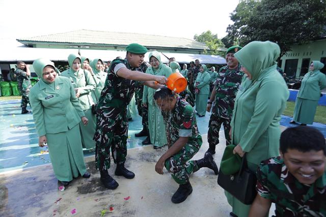 Tradisi siram air bunga tersebut menjadi simbol penyucian diri dan harapan agar prajurit yang naik pangkat senantiasa diberkahi keselamatan, kelancaran, serta kesuksesan dalam setiap tugas. Suasana penuh kebersamaan terlihat ketika Dandim didampingi para perwira menyiramkan air bunga kepada para prajurit, yang disambut dengan rasa haru dan bangga.