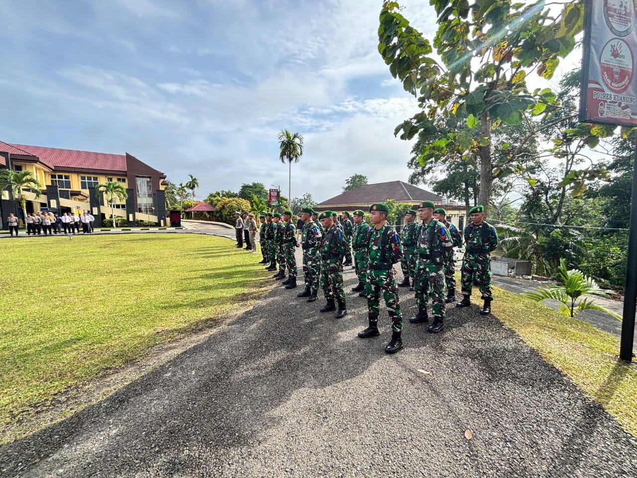 Teluk Kuantan – Dandim 0302//Inhu Letnan Kolonel Arh Bangun Bara K.P.,S.E., M.I.P di Wakili oleh Pabung Dim 0302/Inhu Mayor Inf Legimin menghadiri Apel Gelar pasukan Ops 2025 dalam rangka Apel Gelar Pasukan Ops Patuh Lancang Kuning di halaman Mapolres Kuansing Kel. Sungai Jering Kec. Kuantan Tengah Kab. Kuansing. Senin (17/11/2025).