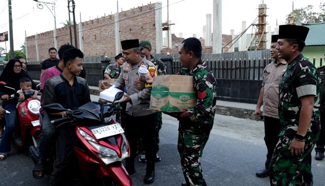 Asahan | Di penghujung bulan suci Ramadhan 1447 Hijriah, Komandan Kodim (Dandim) 0208/Asahan Letkol Inf Edy Syahputra, S.H., M.I.P. bersama Forum Koordinasi Pimpinan Daerah (Forkopimda) Kabupaten Asahan melaksanakan kegiatan berbagi ta’jil kepada masyarakat yang melintas di depan Makodim 0208/Asahan, menjelang waktu berbuka puasa, Kamis (12/3/2026).