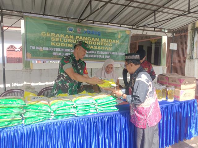 Tanjung Balai  |  Dalam upaya membantu masyarakat memenuhi kebutuhan pokok dengan harga terjangkau, dengan menggelar kegiatan Gerakan Pangan Murah Beras SPHP bekerja sama dengan Bulog, sejak pagi warga tampak antusias mendatangi lokasi untuk mendapatkan beras dengan harga lebih murah dibandingkan harga pasar, kegiatan ini bertujuan membantu meringankan beban ekonomi masyarakat, khususnya di tengah fluktuasi harga bahan pokok, kegiatan ini merupakan wujud nyata sinergi TNI dengan pemerintah daerah dan Bulog dalam menjaga stabilitas pangan, kegiatan ini juga merupakan bagian dari sinergi antara TNI dengan Bulog dan pemerintah daerah dalam menjaga ketahanan pangan local.