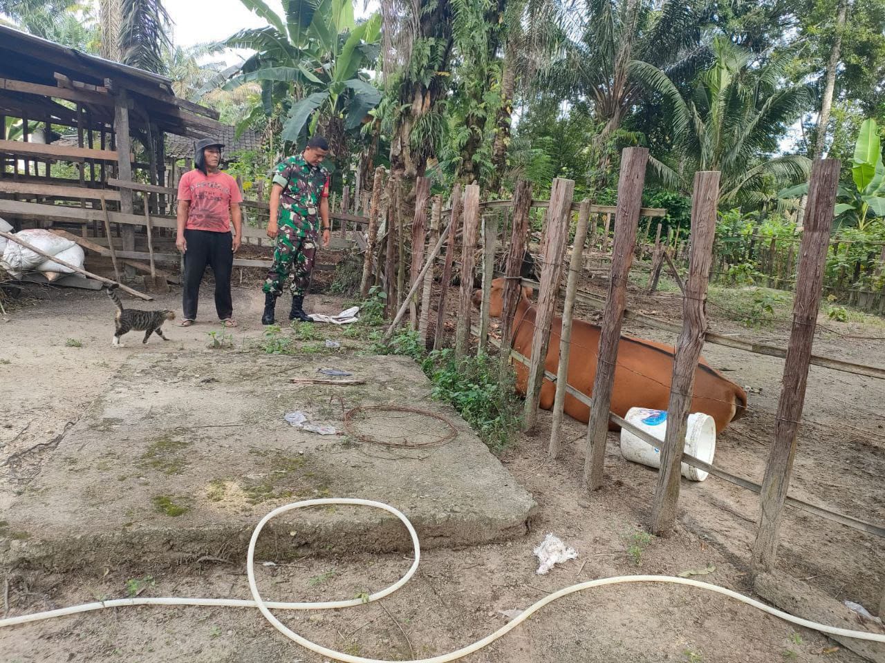 Teluk Kuantan – Guna meningkatkan ketahanan pangan di bidang perternakan, Babinsa Koramil 02/Kuantan Tengah Serda Marizal,As melaksanakan kegiatan pendampingan peternakan sapi di Desa Teratak Air Hitam Kec. Sentajo Raya Kab. Kuansing, Rabu (18/02/2026).