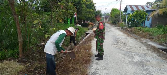 Babinsa Sertu H Manik melaksanakan gotong royong bersama warga Desa binaan untuk membantu pembersihan jalan dan parit di pinggir jalan yang yang di tutupi sampah sampah dan rumput agar supaya air bisa mengalir dengan lancar dan tidak terjadi penyumbatan dan warga dapat beraktifitas dengan nyaman dan lancar, sebagai bentuk kepedulian Babinsa terhadap wilayah binaan, giat gotong royong pembersihan badan jalan dan pemangkasan pohon dan rumput agar terlihat rapi, bersih, agar masyarakat terhindar dari kanker segala penyakit, Gotong-royong bersama warga binaan membersihkan Badan Jalan dari rumput liar dan sampah agar Terlihat bersih dan rapi dan mendekatkan diri dengan masyarakat dengan cara membaur kelapisan masyarakat dengan ikut serta mendukung kegiatan positif yang dilakukan warga, gotong royong bersihkan lingkungan bersama warga masyarakat, kegiatan ini bertujuan untuk membantu masyarakat yang sedang melakukan pembersihan aliran parit dan jalan yang sering banjir, giat ini dilakukan sebagai bentuk kepedulian Babinsa kepada masyarakat desa binaanya, serta menjalin hubungan yang humanis antara Babinsa dengan masyarakat.