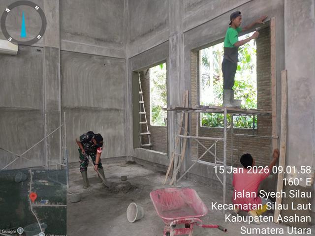 Asahan | TNI Kuat Bersama Rakyat bukan hanya slogan semata-mata melainkan satu kenyataan karena TNI lahir dari rakyat sehingga tercipta seniergitas yang sholid dan harmonis, dan ini merupakan partisipasi dari Babinsa untuk menyumbangkan tenaga dalam rangka pembangunan Masjid, juga sebagai perhatian Kodim 0208/Asahan dalam memperhatikan masyarakat disekitar wilayah teritorialnya, dalam kesempatan tersebut seperti halnya yang dilakukan oleh Personil Bintara Pembina Desa (Babinsa) Koramil 07/Air Joman jajaran Kodim 0208/Asahan Serda Armain S turun kewilayah desa binaan untuk melaksanakan kegiatan Gotong royong membantu pekerjaan Pembangunan Masjid, dengan melaksanakan Bakti TNI bersama dengan yg bertempat di Masjid Raya Nurul Hidayah Dusun V Desa Bangun sari Kec.Silau Laut Kab.Asahan.