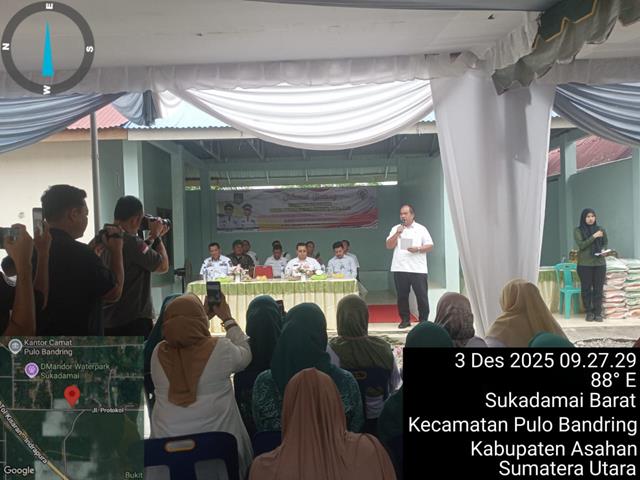 Asahan  |  Penyaluran bantuan pangan ini merupakan program pemerintah dalam mendukung ketahanan pangan serta membantu masyarakat yang membutuhkan di tengah fluktuasi harga kebutuhan pokok. Bantuan yang disalurkan meliputi beras dan minyak goreng yang diperuntukkan bagi warga, dalam kesempatan ini seperti yang dilakukan oleh Bintara Pembina Desa (Babinsa) Koramil 18/Meranti jajaran Kodim 0208/Asahan Pelda Sofyan mewakili Danramil 18/Meranti turut serta menghadiri penyaluran bantuan pangan beras dan minyak goreng alokasi Oktober dan November 2025, kegiatan tersebut yang dilaksanakan bertempat di Desa Suka Damai Kecamatan Pulo Bandring oleh Bupati Asahan, Rabu (03/12/2025).