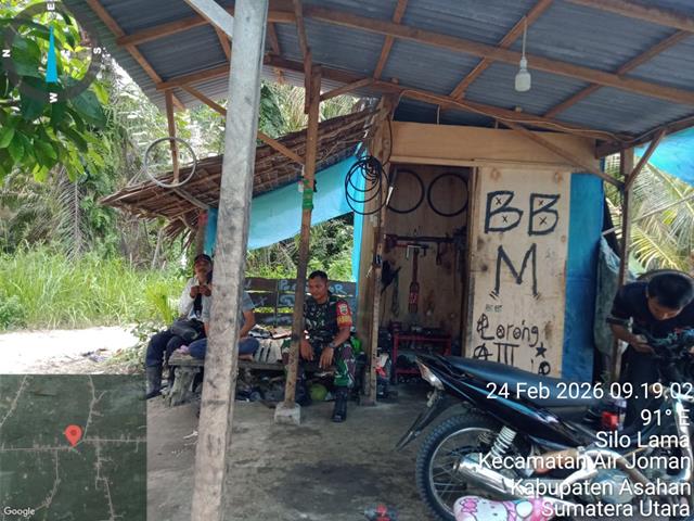 Asahan  |  Dalam rangka agar terjalin komunikasi yang baik antara Babinsa dengan warga masyarakat binaan, dalam kesempatan ini seperti yang dilakukan oleh Personel Bintara Pembina Desa (Babinsa) Koramil 07/Air Joman jajaran Kodim 0208/Asahan Sertu  Wagito turun kewilayah binaan untuk turut serta melaksanakan kegiatan Komunikasi Sosial (Komsos) bersama dengan masyarakat di desa binaan yang bekerja sebagai montir dan pengguna jasa atau konsumen bengkel Sepeda Motor, degan melaksanakan Komunikasi Sosial di Bengkel sepeda motor milik Bapak Supri, Komsos dilaksanakan untuk menjalin hubungan yang baik antara Babinsa dengan warga, bersama dengan Bapak Supri (Pemilik bengkel sepeda motor), Bapak Sujono dan Bapak Rahmad, kegiatan tersebut yang dilaksanakan bertempat di Dusun 3 Desa Silo Bonto Kecamatan Silau Laut Kabupaten Asahan, Rabu (25/02/2026).