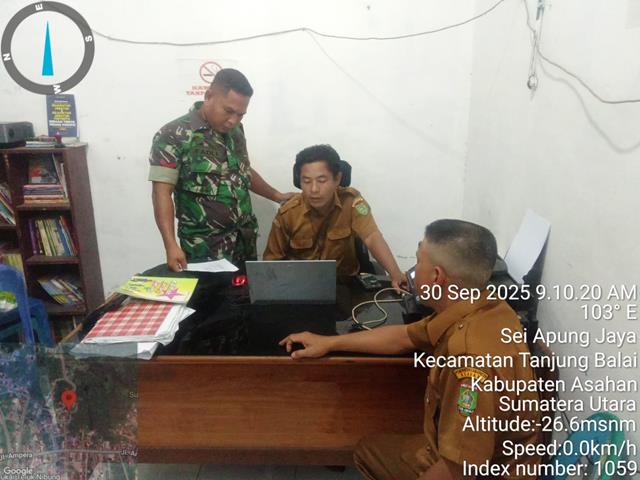 Asahan  |  Dalam rangka untuk menciptakan dan meningkatkan kerja sama yang baik serta menjalin hubungan antara TNI dan aparatur desa serta untuk menciptakan kemanunggal TNI dengan Rakyat, dalam kesempatan tersebut seperti hal yang dilakukan oleh Personel Bintara Pembina Desa (Babinsa) Koramil 08/Pulau Buaya jajaran Kodim 0208/Asahan Kopda Fadli Siagian turun kewilayah binaan untuk melaksanakan kegiatan Komunikasi Sosial (Komsos) bersama dengan perangkat Desa untuk menjalin silaturahim antara Babinsa dan aparat Desa dan untuk mengetahui permasalahan yang ada diwilayah desa binaan, puanter dengan perangkat Desa, Puanter Dengan Perangkat desa, untuk melakukan Pengecekan kepada masyarakat penerima bantuan di wilayah binaan, Babinsa mengingatkan agar pendataan ini benar-benar agar tidak ada kecemburuan sosial di mata masyarakat, Babinsa sekaligus juga menjalin silaturahmi dengan perangkat desa guna selalu terjalin hubungan kerja yang baik, bersama dengan Bapak Hendri dan Bapak Mail, kegiatan tersebut yang dilaksanakan bertempat di Jalan Ampera Sei Apung Jaya Kecamatan Tanjung Balai Kabupaten Asahan, Selasa (30/09/2025).
