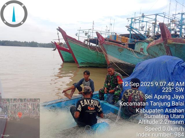 Asahan | Dalam rangka untuk menjalin hubungan dan komonikasi yang baik dengan nelayan dalam rangka untuk terjalinnya hubungan yang harmonis antara para Nelayan-nelayan diwilayah Desa binaan, upaya membangun Komunikasi Sosial dengan seluruh masyarakat terus dilakukan Babinsa, untuk mewujudkan kemanunggalan TNI dan Rakyat, dalam kesempatan ini seperti dilakukan oleh Personel Bintara Pembina Desa (Babisna) Koramil 08/Pulau Buaya jajaran Kodim 0208/Asahan Kopda Fadli Siagian turun kewilayah desa binaan untuk melaksanakan kegiatan Komunikasi Sosial (Komsos) bersama dengan Nelayan, Komunikasi sosial dengan masyarakat nelayan yang sedang memperbaiki kapal tangkap ikan Babinsa melakukan interaksi guna mengetahui situasi desa binaan juga sekaligus menjalin silaturahmi dan komunikasi yang baik dengan nelayan, Babinsa menanyakan hasil tangkapan ikan di laut kepada nelayan dan nelayan merespon dengan baik, bersama dengan Bapak Hendri, Bapak Ramli dan Bapak Sudi, kegiatan tersebut yang dilaksanakan bertempat di Jalan Ampera Sei Apung Jaya Kecamatan Tanjung Balai Kabupaten Asahan, Jumat (12/09/2025).