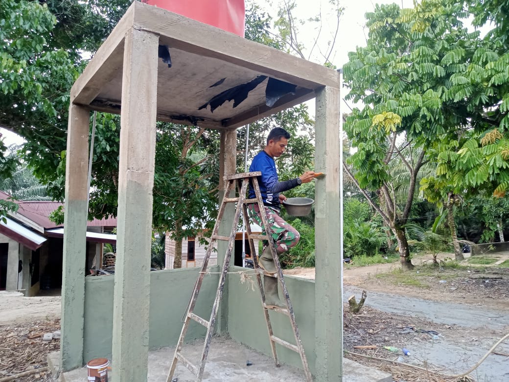 JELANG LAUNCHING SUMUR AIR BERSIH PROGRAM TNI AD MANUNGGAL AIR (TMAB) BABINSA KORAMIL 08/KM LAKSANAKAN PENGECATAN ANJUNGAN TOREN AIR