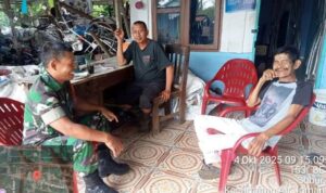 Teluk Kuantan – Kegiatan Komunikasi Sosial selain silaturahmi untuk mempererat hubungan TNI dan rakyat juga untuk mengetahui perkembangan situasi di wilayah binaan. Hal tersebut ditegaskan Babinsa Koramil 02/Kuantan Tengah Kodim 0302/Inhu Koptu Yudi Handrika saat melaksanakan Komsos dengan warga binaannya di Desa Warga Desa Talontam Benai Kec. Benai Kab. Kuansing, Sabtu (04/10/2025).
