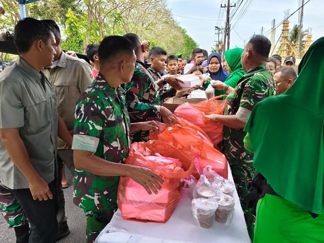Asahan | Dalam rangka menyemarakkan bulan suci Ramadhan 1447 H, jajaran Kodim 0208/Asahan kembali menunjukkan kepedulian sosial dengan konsisten membagikan ta’jil kepada masyarakat menjelang waktu berbuka puasa. Kegiatan tersebut dilaksanakan di depan Makodim 0208/Asahan dan mendapat sambutan hangat dari warga yang melintas.