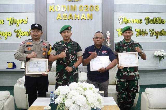 Asahan  |  Komandan Kodim 0208/Asahan, Letkol Inf Edy Syahputra, SH., M.I.P. memberikan apresiasi dan penghargaan kepada Babinsa, Bhabinkamtibmas, serta awak media yang telah menunjukkan dedikasi dan kontribusi nyata dalam mendukung tugas-tugas Kodim 0208/Asahan.