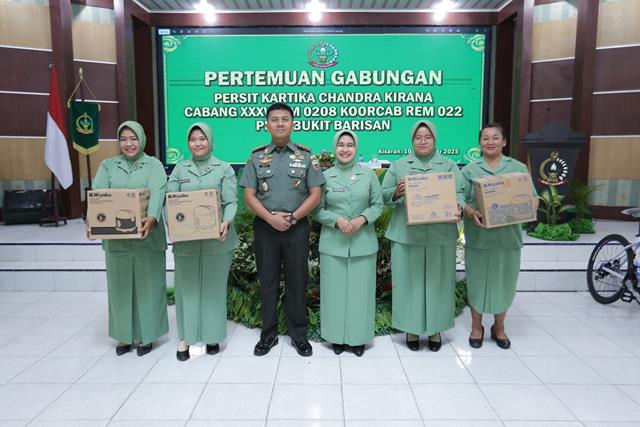Asahan | Komandan Kodim 0208/Asahan Letkol Inf Edy Syahputra, S.H., M.I.P., selaku Pembina Persit Kartika Chandra Kirana Cabang XXXV Dim 0208/Asahan, menghadiri kegiatan Pertemuan Gabungan Persit Kartika Chandra Kirana yang dilaksanakan di Aula Pandawa Sakti Kodim 0208/Asahan, Rabu (10/12/2025).