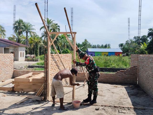Kompak Bantu Bangun Rumah Masyarakat Binaan Dilakukan Personel Koramil 08/PB Kodim 0208/Asahan