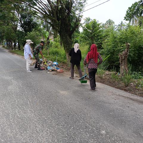 Kegiatan gotong royong bersama dengan warga masyarakat dan Perangkat Kelurahan untuk tujuan membersihkan sampah yg berada di badan jalan dan di parit untuk mencegah sarang nyamuk dan juga banjir pada saat hujan, kegiatan gotong royong bersihkan lingkungan bersama warga masyarakat ini bertujuan untuk menumbuhkan semangat gotong-royong dan kepedulian masyarakat terhadap kebersihan lingkungan sekitarnya. Kondisi sekeliling kiri kanan jalan yang ditumbuhi dengan rumput liar dan banyaknya sampah membuat pemandangan sekitar menjadi kurang enak dipandang dan terkesan tidak terpelihara kebersihannya. Selain itu, kegiatan ini juga sebagai upaya agar masyarakat selalu peduli dan memupuk tali silaturahmi dan kerjasama yang baik antara anggota Babinsa dengan aparat desa dan masyarakat. Hal ini diharapkan dapat semakin memperkuat kemanunggalan TNI dengan rakyat.