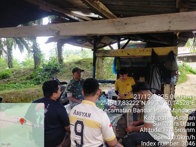 Asahan | Kegiatan komsos di tengah-tengah warga binaan mencerminkan kepedulian seorang aparat teritorial kepada masyarakat. Disisilain pelaksanaan komsos merupakan kegiatan rutin yang harus dilaksanakan oleh Babinsa untuk mengetahui perkembangan situasi di wilayah binaannya. Tidak lain seperti yang dilaksanakan oleh Personel BIntara Pembina Desa (Babinsa) Koramil 14/Bandar Pasir Mandoge jajaran Kodim 0208/Asahan Serka L Siringo Ringo turun kewilayah desa binaan untuk melaksanakan kegiatan Komunikasi Sosial (Komsos) bersama dengan masyarakat binaan, kegiatan Komsos disamping silahturahmi bertujuan untuk mengayomi masyarakat sehingga masyarakat lebih dekat kepada Babinsa kususnya TNI, bersama masyarakat melaksanakan komsos membahas tentang Pos Kamling agar tetap diaktifkan kembali supaya tetap terjaga keamanan dan ketertiban di Desa, kegiatan ini dilaksanakan guna membangun kebersamaan dan kekompakan dalam melaksanakan keamanan dan ketertiban di dusun sehingga tetap kondusif, bersama dengan Bapak Hendri Nasution, Bapak Ariansyah Butar Butar, Bapak Solihin dan Bapak Rury Sijabat, kegiatan tersebut yang dilaksanakan bertempat di Dusun IX Desa Bandar Pasir Mandoge Kecamatan Bandar Pasir Mandoge Kabupaten Asahan, Minggu (21/12/2025).