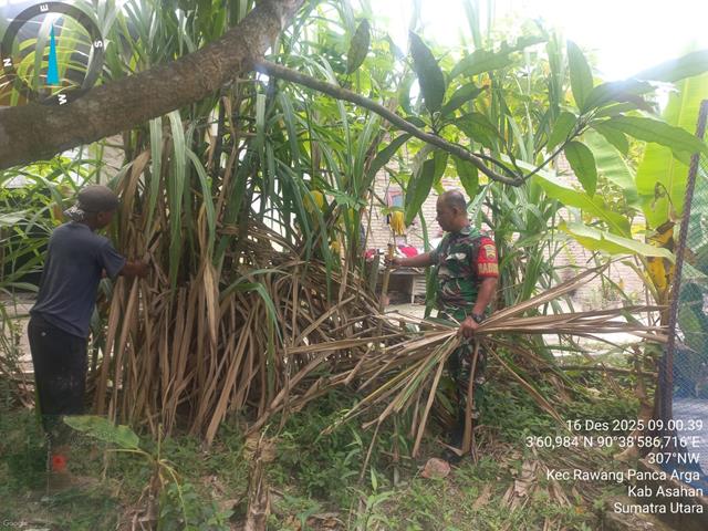 Dalam kesempatan ini seperti yang dilakukan oleh Personel Bintara Pembina Desa (Babinsa) Koramil 18/Meranti jajaran Kodim 0208/Asahan Sertu Irawiyadi turun kewilayah untuk turut serta melaksanakan kegiatan Hanpangan dengan Petani Tebu dalam ketahanan pangan di ladang kebun warga masyarakat binaan, kegiatan membantu warga Membersihkan di Kebun Bapak Ipnu (pemilik kebun), kegiatan tersebut bertujuan untuk menciptakan hubungan yang humanis antara babinsa dengan warga desa,babinsa senantiasa menghimbau dan memberikan Motipasi kepada seluruh warga untuk dapat memanfaatkan lahan semaksimal mungkin dengan membudi daya tanaman pangan agar tetap tersedianya kebutuhan pangan dan tentunya dapat menambah penghasilan bagi warga itu sendiri, kegiatan tersebut yang dilaksanakan bertempat di Desa Panca Arga Kecamatan Rawang Panca Arga Kabupaten Asahan, Selasa (16/12/2025).