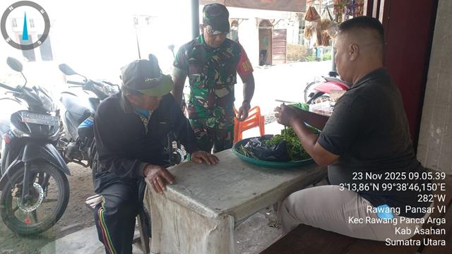 Agar terjalin nya hubungan baik Antara Babinsa dengan Warga masyarakat untuk menunjang Tupoksi Apter, dalam kesempatan ini seperti yang dilakukan oleh Personel Bintara Pembina Desa (Babinsa) Koramil 18/Meranti jajaran Kodim 0208/Asahan Sertu Irawiyadi turun kewilayah binaan untuk melaksanakan Komunikasi Sosial (Komsos) bersama warga masyarakat dalam rangka membicarakan tentang Kamtibmas diwilayah desa binaan, Komsos dilaksanakan dengan tujuan untuk mengantisipasi kerawanan.dalam rangka tahapan pilkada dan menghimbau kepada masyarakat apabila di wilayah nya ada hal menonjol segera dilaporkan kepada babinsa agar masalah dapat di selesaikan, kegiatan Komsos dengan warga sekaligus sebagai sarana untuk memonitor segala perkembangan yang terjadi ditengah tengah masyarakat, bersama dengan Bapak Wardan dan Bapak Lumban, kegiatan tersebut yang dilaksanakan bertempat di Desa Panca Arga Kecamatan Rawang Panca Arga Kabupaten Asahan, Minggu (23/11/2025).