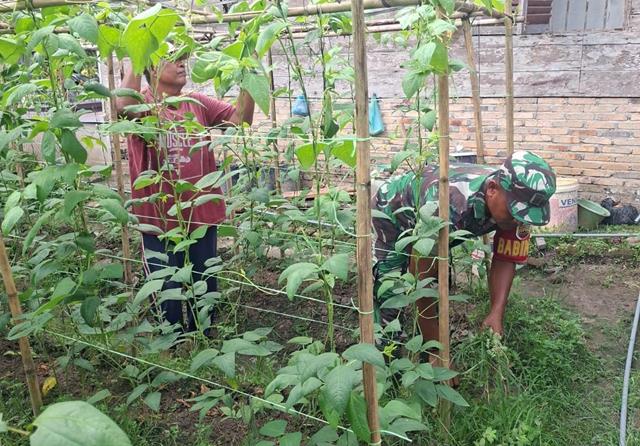 Dalam kegiatan ini Babinsa melakukan pendataan harga kacang panjang yang ada diwilayah serta mendampingi dan membantu memetik kacang panjang dan mendata luas lahan tanaman kacang panjang dengan luas ladang 3 Rante, semua ini dilakukan untuk memberikan motivasi kepada para petani agar hasil dari pertanian mereka semakin meningkat, sehingga secara tidak langsung dapat meningkatkan ketahanan pangan diwilayah binaan, kegiatan pendampingan perawatan tanaman Kacang panjang ini juga sebagai ajang silaturahmi dengan para petani dalam memberikan semangat serta motivasi dalam bercocok tanam.