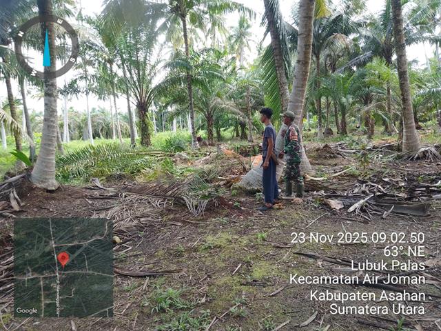 Dengan memantau situasi keamanan dan ketertiban masyarakat (kamtibmas) di wilayah desa/kelurahan binaan, dengan menyampaikan pesan dan edukasi tentang berbagai hal, seperti pentingnya menjaga kebersihan lingkungan atau keselamatan kerja, untuk mengajak masyarakat untuk bersama-sama menjaga keamanan dan ketertiban di lingkungan mereka, dalam kesempatan ini seperti yang dilakukan oleh Personel Bintara Pembina Desa (Babisna) Koramil 07/Air Joman jajaran Kodim 0208/Asahan Kopka  Rudi turun kewilayah binaan untuk melaksanakan kegiatan Komunikasi Sosial (Komsos) serta melaksanakn pengecekan pohon kelapa warga binaan, dengan mendata luas kebun kelapa di tanah milik desa bersama Bapak Kurniawan yang dipercaya merawat kebun lahan desa, kegiatan tersebut yang dilaksanakan bertempat di Dusun 7 Desa Lubuk Palas Kecamatan Silau Laut Kabupaten Asahan, Minggu (23/11/2025).