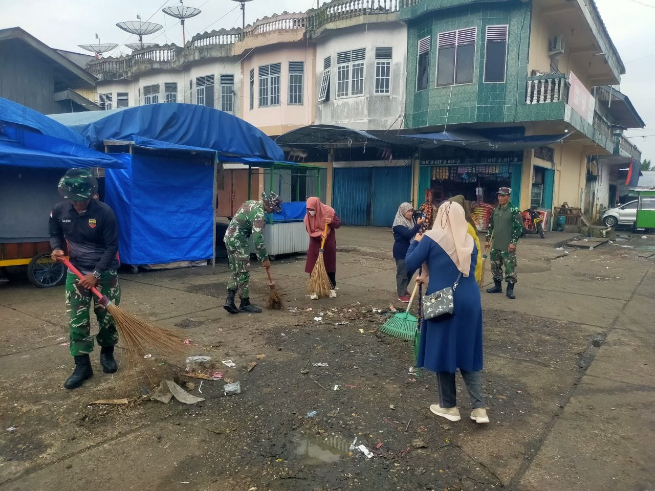 Guna menjaga lingkungan yang nyaman dan bersih,Personil Koramil 08/KM yang dipimpin langsung Danramil Kapten Inf Aplison bersama unsur pimpinan kecamatan (Upika) Kuantan Mudik melaksanakan kegiatan gotong royong (Goro) bersama atas instruksi presiden RI bertempat di Pasar Lubuk Jambi Kecamatan Kuantan Mudik Kabupaten Kuantan Singingi. Rabu (04/02/2026).