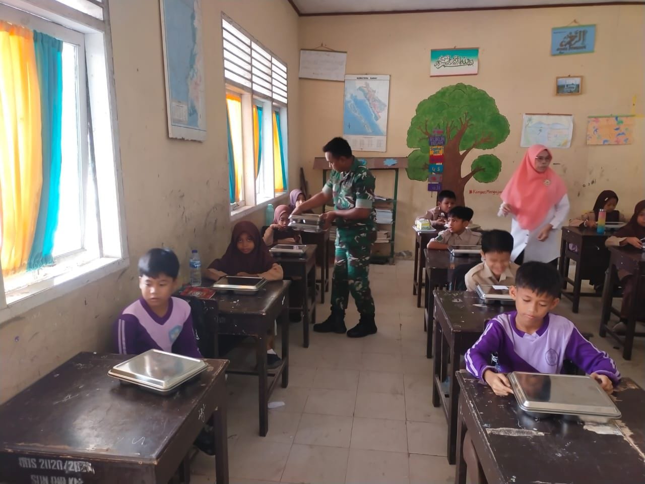 Dalam rangka mendukung program makan bergizi gratis bagi anak sekolah di wilayah binaan,Personil Koramil 08/KM Serda Ari Waluyo dampingi dan bantu pelaksanaan program MBG tersebut.kegiatan Ini sebagai bentuk dukungan terhadap program pemerintah dalam meningkatkan kesehatan dan kesejahteraan masyarakat, khususnya siswa- siswi di sekolah.seperti contoh di SDN 018 Rantau Sialang dengan jumlah siswa 120 orang (120 porsi). Rabu (05/11/2025).