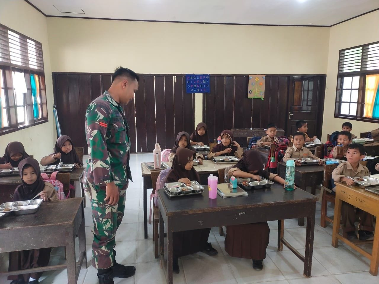 Koramil 08/KM Dampingi Pelaksanaan Makan Bergizi Gratis Di Sekolah