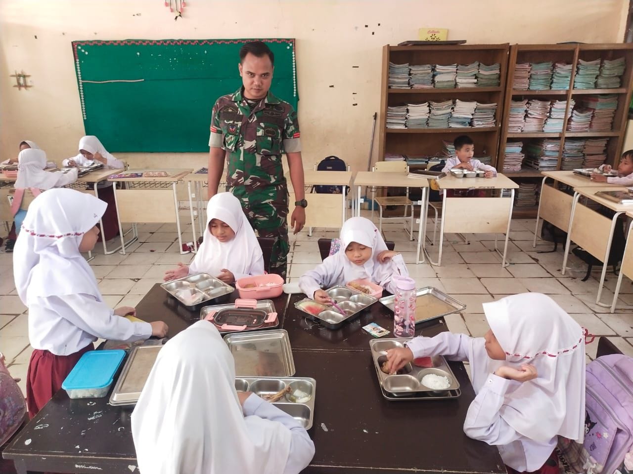 Dalam rangka mendukung program makan bergizi gratis bagi anak sekolah di wilayah binaan,Personil Koramil 08/KM kodim 0302/Inhu Pratu Agil Saputra dampingi dan bantu pelaksanaan program MBG tersebut.kegiatan Ini sebagai bentuk dukungan terhadap program pemerintah dalam meningkatkan kesehatan dan kesejahteraan masyarakat, khususnya siswa-siswi di sekolah.Selasa (20/01/2026).