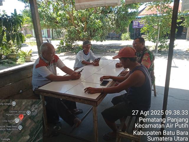Batu Bara | Komunikasi sosial yang dilakukan merupakan wadah silahturahmi antara Babinsa dengan tokoh Masyarakat sekitar, yang dapat memupuk kebersamaan dan menimbulkan rasa saling hormat menghormati antar sesama di wilayah Binaan, pentingnya Silahturahmi dengan tokoh-tokoh masyarakat di wilayah binaan merupakan suatu bentuk kedekatan kita dengan warga. Dalam kesempatan ini Personel Bintara Pembina Desa (Babinsa) Koramil 02/Air Putih jajaran Kodim 0208/Asahan Sertu A Tumanggor turun kewilayah desa binaan untuk melaksanakan kegiatan Komunikasi Sosial (Komsos) bersama dengan Tokoh masyarakat dan warga masyarakat binaan, Komsos kepada tokoh masyarakat, tokoh agama tentang kerukunan hidup beragama agar saling menghormati keyakinan masing masing tolong menolong, berkerja sama dalam mencapai tujuan bersama, bersama dengan Bapak P Sitinjak (Tomas), Bapak R Sitorus (Toga) dan Bapak T Sirait (Warga), kegiatan tersebut dilakukan bertempat di Desa Pematang Panjang Kecamatan Air Putih Kabupaten Batu Bara, Rabu (27/08/2025).