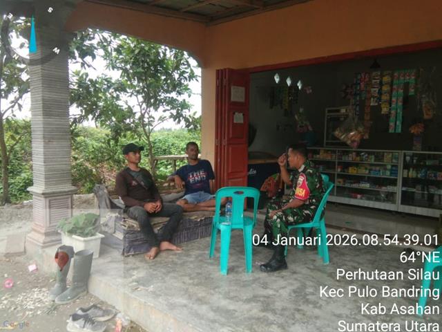 Asahan  |  Dalam rangka agar terjalinnya komunikasi yang baik antara Babinsa dengan masyarakat TNI kuat bersama Rakyat, warga berterimakasih atas kepedulian babinsa telah mengingatkan untuk menjaga kesehatan di musim suhun panas saat ini dan terjalinnya hubungan baik antar warga binaan dengan Babinsa, dalam kesempatan ini seperti yang dilakukan oleh Personel Bintara Pembina Desa (Babinsa) Koramil 18/Meranti jajaran Kodim 0208/Asahan  Serka Suparlan turun kewilayah binaan untuk melaksanakan kegiatan Komunikasi Sosial (Komsos) bersama dengan Warga masyarakat binaan serta menjalin hubungan silaturahmi yang baik dengan masyarakat, tetap solid sehingga dapat mengetahui informasi yang berkembang, kegiatan Komsos dengan warga sebagai sarana untuk mengenal lebih dekat dengan warga binaan sehingga tercipta hubungan yang humanis antara babinsa dan seluruh warga,dalam suasana tahun baru 2026 Babinsa mengajak kepada seluruh warga senantiasa menumbuhkan rasa toleransi dan semangat tolong menolong kepada semua warga agar situasi kamtibmas desa tetap aman dan kondusif, bersama dengan Bapak Risdi (Dusun 3) dan Bapak Warso (Dusun 3), kegiatan tersebut yang dilaksanakan bertempat di Desa Perhutaan Silau Kecamatan Pulo Bandring Kabupaten Asahan, Minggu (04/01/2026).