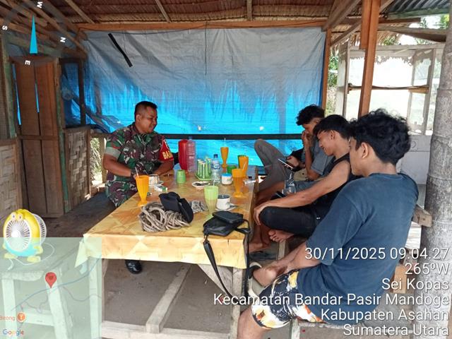 Asahan | Dalam rangka meningkatkan sinergitas di wilayah binaanya, dalam kesempatan ini seperti yang dilakukan oleh Personel Bintara Pembina Desa (Babinsa) Koramil 14/Bandar Pasir Mandoge jajaran Kodim 0208/Asahan Kopda Suyanto turun kewilayah binaan untuk melaksanakan Komunikasi Sosial (Komsos) bersama dengan masyarakat, komsos membahas tentang Pos Kamling agar tetap aktif supaya tetap terjaga keamanan dan ketertiban di Desa. Kegiatan ini dilaksanakan guna membangun kebersamaan dan kekompakan antar TNI dengan masyarakat dalam melaksanakan keamanan sehingga suasana tetap kondusif, berkoordinasi tentang peningkatan penjagaan pos Siskamling dan menghimbau kepada warga binaan untuk meningkatkan lagi penjagaan pos Siskamling, bersama dengan Bapak Adi, Bapak Gilang Manurung dan Bapak Tio Sinurat, kegiatan tersebut yang dilaksanakan bertempat di Dusun XI Desa Sei Kopas Kecamatan Bandar Pasir Mandoge Kabupaten Asahan, Minggu (30/11/2025).