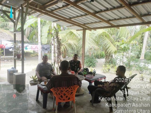 Asahan  |  Dalam rangka agar terjalinnya tali silaturahmi dan hubungan yang harmonis antara Babinsa dengan masyarakat serta menghimbau agar menjaga kesehatan terhadap warga Desa binaan, dalam kesempatan ini seperti yang dilakukan oleh Personel Bintara Pembina Desa (Babinsa) Koramil 07/Air Joman jajaran Kodim 0208/Asahan Serda Armain S turun kewilayah binaan untuk melaksanakan kegiatan Komunikasi Sosial (Komsos) bersama dengan warga Masyarakat binaan, untuk tujuan menghimbau para remaja agar turut serta berperan di lingkungan masyarakat seperti gotong royong, dengan melaksanakan Komunikasi Sosial dengan warga binaan ini Babinsa menjalin komunikasi bersama warga binaan dengan tujuan untuk bersilaturahmi dan mengetahui perkembangan situasi yang terjadi di tengah-tengah masyarakat, bersama dengan Bapak Ayen (Pemilik rumah), Bapak Muhammad Nuh (Warga) dan Bapak T Gurning (warga), kegiatan tersebut yang dilaksanakan bertempat di Rumah Bapak Ayen Dusun VIII Desa Bangun Sari Kecamatan Silau Laut Kabupaten Asahan, Sabtu (18/04/2026).