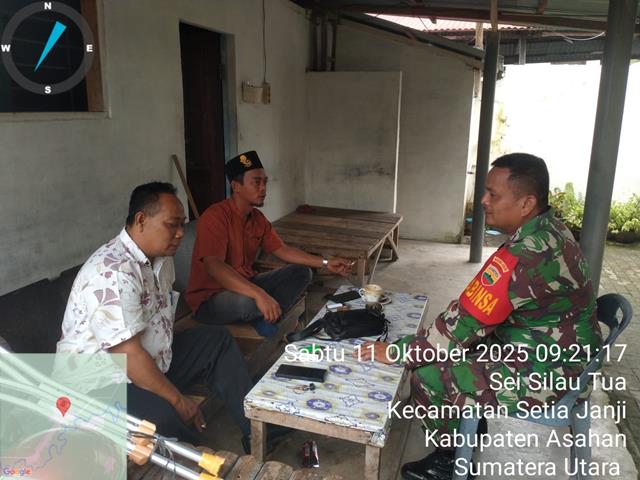 Asahan | Dalam kesempatan ini pada Komsosnya bersama Warga berterimakasih atas kepedulian babinsa telah mengingatkan untuk menjaga kesehatan di musim suhun Panas saat ini dan Terjalinnya hubungan baik antar warga binaan dengan Babinsa. Dalam rangka agar terjalinnya komunikasi yang baik antara Babinsa dengan masyarakat TNI kuat bersama Rakyat, dalam kesempatan ini seperti yang dilakukan oleh Personel Bintara Pembina Desa (Babinsa) Koramil 13/Buntu Pane jajaran Kodim 0208/Asahan Koptu Riki Ramadhan Pada hari Sabtu turun kewilayah binaan untuk melaksanakan kegiatan Komunikasi Sosial (Komsos) bersama dengan Warga masyarakat binaan serta menjalin hubungan silaturahmi yang baik dengan masyarakat, tetap solid sehingga dapat mengetahui informasi yang berkembang, komsos dengan masyarakat binaan untuk menjalin tali silaturahmi sehingga dapat membantu Babinsa dalam mencari informasi tentang perkembangan situasi di Desa binaan, bersama dengan Bapak Wanto dan Bapak Adi, kegiatan tersebut yang dilaksanakan bertempat di Dusun II Desa Sei Silau Tua Kecamatan Setia Janji Kabupaten Asahan, Sabtu (11/10/2025).