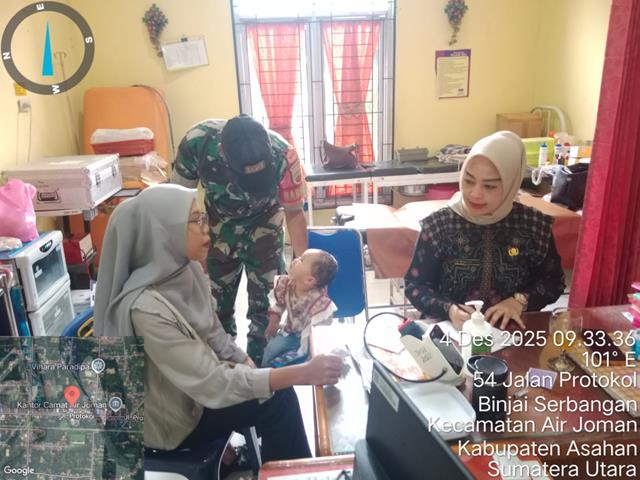 Dalam rangka untuk mensukseskan tugas-tugas pemerintah yang ada diwilayah binaan serta meperbaharui data kewilayahan, dalam kesempatan ini seperti yang dilakukan oleh Personel Bintara Pembina Desa (Babinsa) Koramil 07/Air Joman jajaran Kodim 0208/Asahan Sertu Ali Imron turun kewilayah desa binaan untuk melaksanakan kegiatan Puanter, kegiatan Pul data ter ke Puskesmas bersama pihak Puskesmas, dengan melaksanakan mendata Stunting, bersama dengan Dr Ratna (Dokter), Ibu Desi (Operator) dan Ibu Nurul (Masyarakat), kegiatan tersebut yang dilaksanakan bertempat di Puskesmas Kelurahan Binjai Serbangan Kecamatan Air Joman Kabupaten Asahan, Kamis (04/12/2025).
